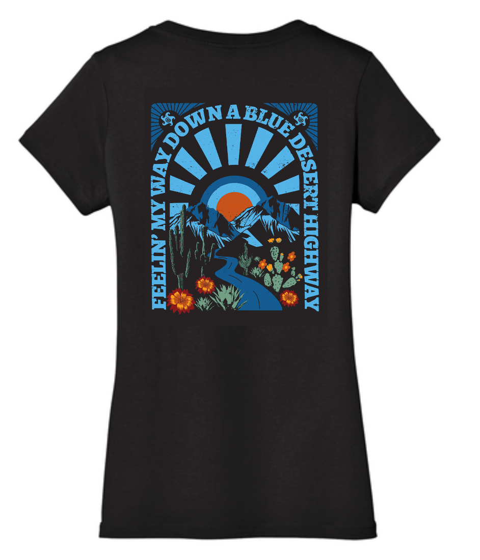 Inspired from the lyrics of "Your Name on a Grain of Rice," from ¡Americano! This new t-shirt design says "Feelin' My Way Down a Blue Desert Highway" on the back and band name centered on the front. Available in S-2X.